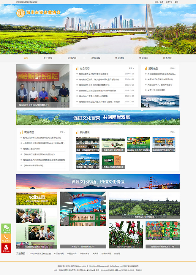 近年來,海南臺資企業(yè)協(xié)會在政府及相關部門的關懷指導和會員及在瓊臺商會員的支持參與下,真正做到了“政府與會員之間相互聯(lián)系的橋梁,會員之間相互了解與協(xié)作的紐帶,在瓊臺商企業(yè)家發(fā)展的平臺”,成為海南臺商溫暖和諧的“家”,獲得各界高度好評。