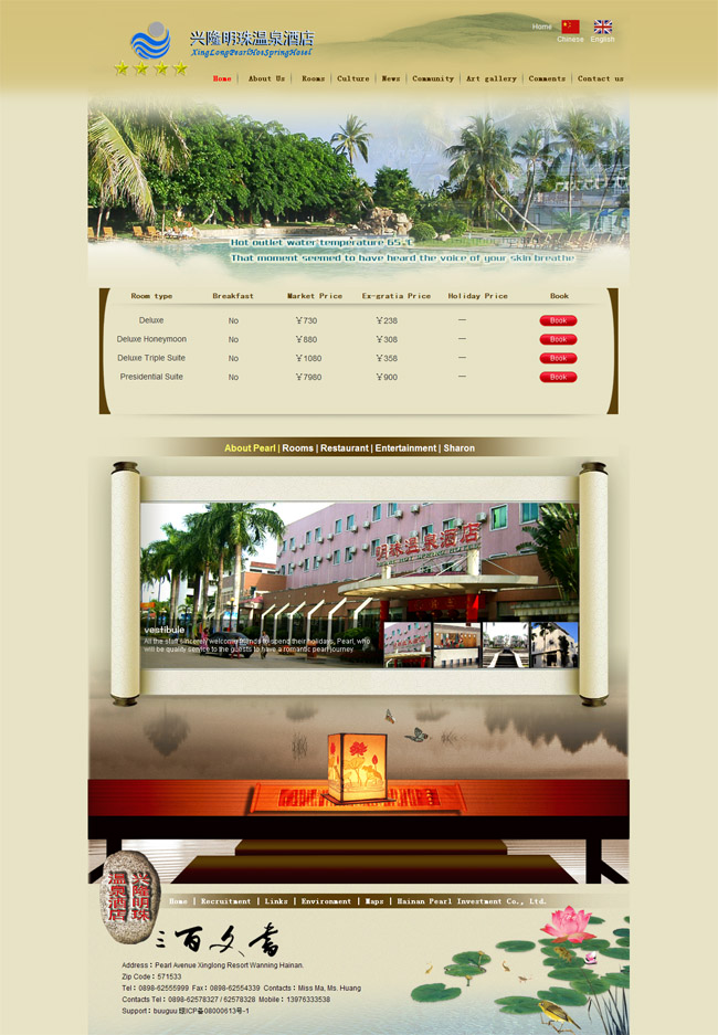 案例背景:隆明珠溫泉酒店是浙江海地投資置業(yè)有限公司于2007年3月在海南購(gòu)置的一家酒店。酒店占地66600平方米,由一棟主樓、一座大型綜合娛樂(lè)城及34棟各式別墅組成,酒店建有三棟豪華別墅,配有總統(tǒng)套等各式套房2套。酒店擁有各式客房400間,以及中餐廳、西餐廳、大堂吧及娛樂(lè)酒吧,擁有多功能會(huì)議廳、購(gòu)物商場(chǎng)及商務(wù)中心,擁有興隆地區(qū)獨(dú)一無(wú)二的日式風(fēng)格的大型溫泉泳池、夜總會(huì)、網(wǎng)球場(chǎng)、健身中心、桑拿按摩、商場(chǎng)等,并可為來(lái)賓提供濱海高爾夫球休閑運(yùn)動(dòng)服務(wù),酒店可為來(lái)賓提供出租車(chē)、送餐、洗衣、托嬰、殘疾人服務(wù)等。酒店?duì)I業(yè)以來(lái),科學(xué)、合理、優(yōu)化的管理,不斷提高服務(wù)水平,使酒店在激烈競(jìng)爭(zhēng)的旅游市場(chǎng)上迅速具備了較高的知名度和美譽(yù)度;微笑服務(wù)、拾金不昧、殘疾人服務(wù)等贏得了賓客的廣泛贊譽(yù),被評(píng)為“海南省96-97文明單位”,98年“海南省十佳旅游飯店”。 興隆明珠溫泉酒店多次接待了世界許多國(guó)家重要領(lǐng)導(dǎo)人貴賓以及新西蘭、馬來(lái)西亞、法國(guó)、德國(guó)等到國(guó)駐華大使。曾經(jīng)在接待人大常委會(huì)委員長(zhǎng)李鵬等領(lǐng)導(dǎo)人時(shí),李鵬委員長(zhǎng)還為酒店題詞“明珠春暖椰島,溫泉旅游勝地”!