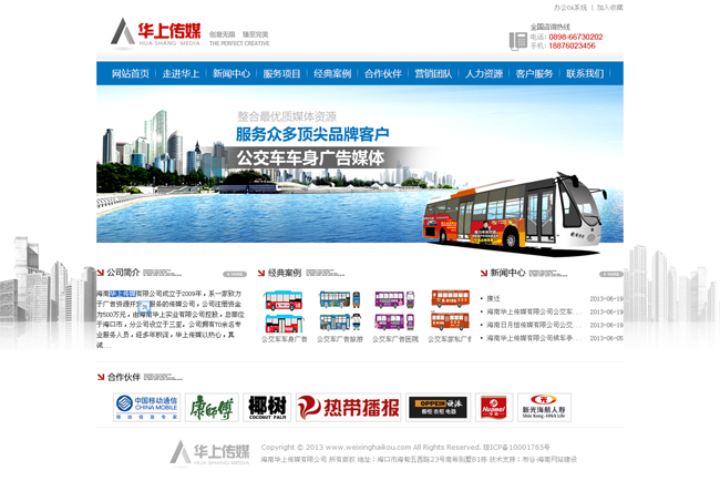 案例背景:海南華上傳媒有限公司成立于2009年,系一家致力于廣告資源開發(fā)、服務(wù)的傳媒公司,公司注冊資金為500萬元,由海南華上實業(yè)有限公司控股,總部位于??谑?,分公司設(shè)立于三亞。公司擁有70余名專業(yè)服務(wù)人員,經(jīng)多年積淀,華上傳媒以熱心,真誠的服務(wù),深受到省內(nèi)外客戶的信賴。