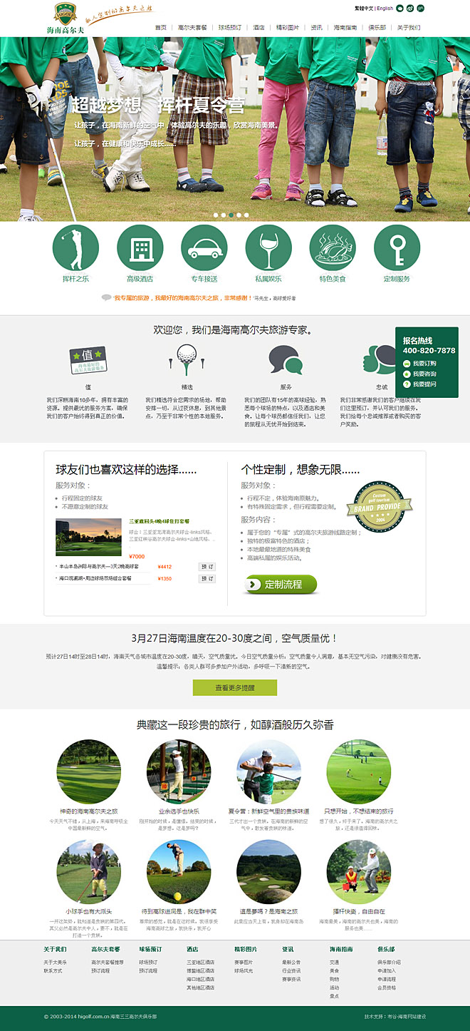 海南高球網(wǎng)。www.higolf.com.cn,是海南高球高爾夫咨詢管理公司的主要業(yè)務(wù)平臺。我們有“做好的高爾夫旅游”的追求,涵蓋個性旅游旅行、高爾夫賽事、人力資源、太美樂俱樂部等版塊,致力創(chuàng)造中國影響力聚合平臺。面向追求更個性化的高球人群,提供主題性、個性化與標(biāo)準(zhǔn)化相結(jié)合的產(chǎn)品,其中包括旅行產(chǎn)品與活動產(chǎn)品。2005年以來,我們接待過無數(shù)次高爾夫旅行團(tuán),有臺灣、新加坡、印尼、韓國、日本的高爾夫旅行團(tuán),為超過9000人提供過優(yōu)質(zhì)服務(wù)。