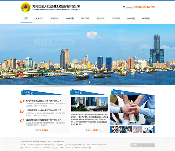 海南國盾人防建設工程咨詢有限公司是海南首家致力于為政府部門、建設單位提供人防工程施工圖審查、人防工程設計咨詢等服務的專業(yè)咨詢機構。公司成立于2011年3月,于同年6月取得國家人防辦頒發(fā)的人防工程施工圖設計文件審查資格證?,F(xiàn)有各專業(yè)審查人員18人, 其中建筑專業(yè)4人,結構專業(yè)4人,通風專業(yè)3人,電氣專業(yè)4人,給排水專業(yè)3人。全部具有國家認證的注冊工程師資格及人防專項審查師資格。